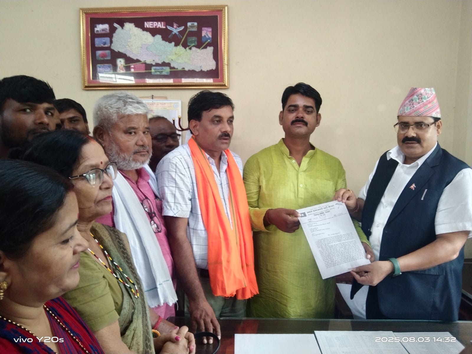 जनता समाजबादी पार्टी जिल्ला कार्य समिति रौतहट आइ प्रधानमन्त्री तथा मधेश प्रदेश सरकारके मुख्यमन्त्रीके ज्ञापन पत्र बुझएले हए । सुख्खाग्रस्त क्षेत्र घोषणा कएलापर भि किसानके राहत पैकेज देबेके परल लगायतके माग राखइत जसपा नेपाल जिल्ला प्रशासन कार्यालय मार्फत ज्ञापन पत्र बुझएले हए । जिल्ला अध्यक्ष राजिव रंजन यादवके नेतृत्व गेल जसपा नेपालके कार्यकर्तासब सहायक प्रमुख जिल्ला अधिकारी किरणनिधि तिवारीके ज्ञापन पत्र बझएले हए ।